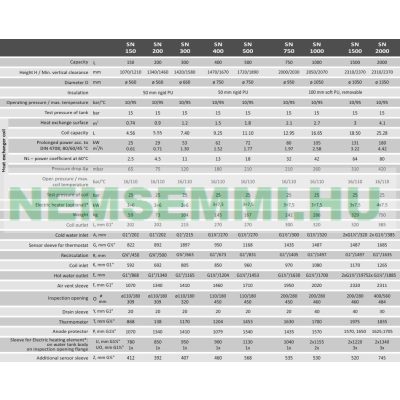 • Függőleges típusok: 150, 200, 300, 400, 500, 750, 1000, 1500, 2000 liter