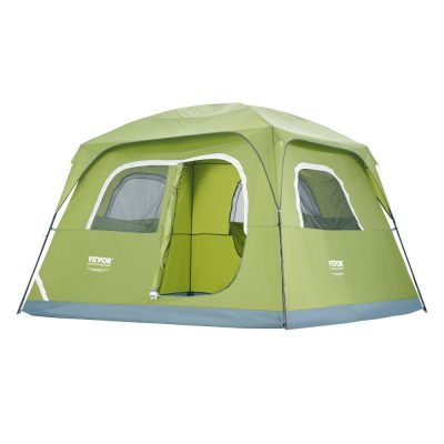VEVOR kemping sátor 6 személyes pop-up sátor 305x275x200cm kupola sátorponyva 190T Dacron + 150D Oxford keret Q235 + üvegszálas trekking sátor fesztivál sátor sátor két ajtóval és három ablakkal zöld