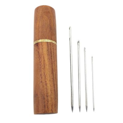 • 4 db háromszög keresztmetszetű bőrvarrótű, szűcstű, ébenfa tokban