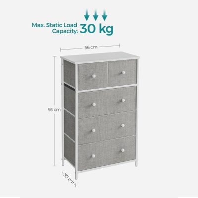 • 5 szövet fiókos komód, tárolószekrény, 30 x 56 x 93 cm, világosszürke fehér
