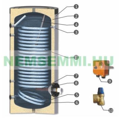 1 hőcserlővel ellátott HMV tartály extra nagy felületű csőkígyóval