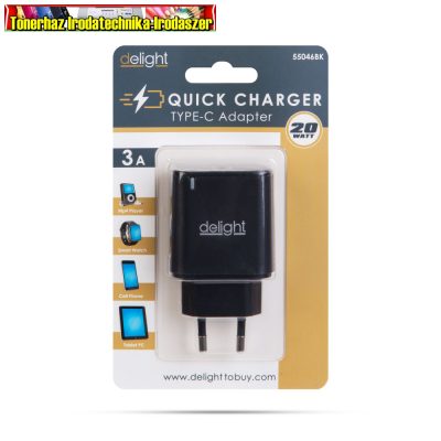 • 55046BK Adapter - Type-C - gyorstöltő, PD20W - fekete