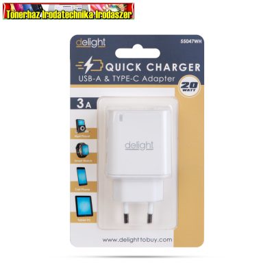 • 55047WH Hálózati Adapter USB + Type-C PD20W gyorstöltéssel - fehér