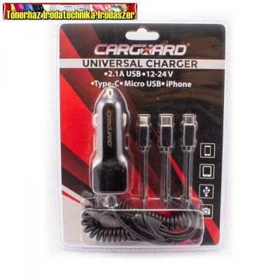 55051 Univerzális autós telefontöltő, micro USB + iPhone csatlakozással + USB 1A (szivargyújtó töltő) UCC003