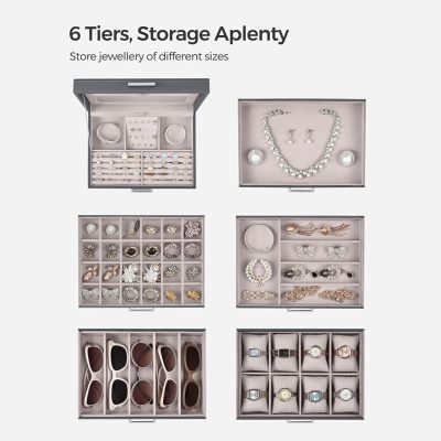 • Kincseidért ma és holnap végre kiürítheted fiókodat ékszerekkel, mindet megfelelő helyre teheted és otthonodba hívhatsz másokat is!Ezzel a 6 szintes ékszerdobozzal minden rendezett és könnyen használható