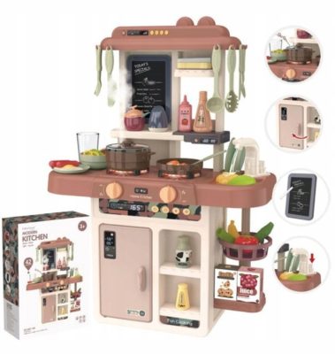 • A készlet rengeteg kiegészítőt tartalmaz (gyümölcsök, zöldségek, edények, tányérok, evőeszközök, sütemények, csokoládé)