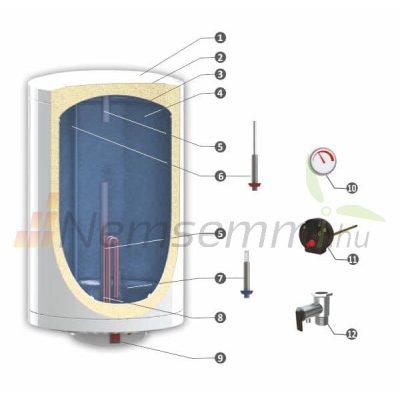 • 80 literes SunSystem melegvíz tároló villanybojler beépített 2kW fűtőbetéttel. Használati melegvíz tároló zománcozott tartály HMV