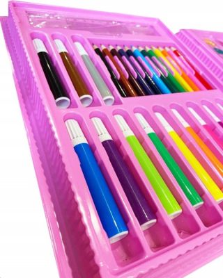 98 részes rajz- és festőkészlet praktikus tárolóban - rózsaszín