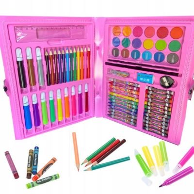 98 részes rajz- és festőkészlet praktikus tárolóban - rózsaszín