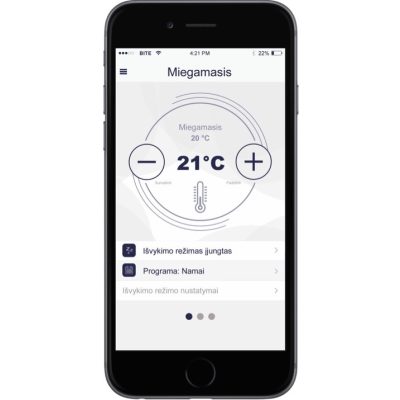 A termosztát pontosan fenntartja a beállított hőmérsékletet, mely elengedhetetlen a kényelmes és gazdaságos működéshez. Az LCD kijelző mutatja az aktuális szobahőmérsékletet, melyet az okostelefonon, tableten az applikáción keresztül bármikor könnyen változtathatunk.