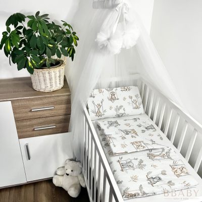 A szett egy 70×90 cm-es paplant és egy 40×50 cm-es lapos párnát tartalmaz, mindkettő fix huzatos kivitelű – azaz a töltet a huzatba van varrva, így nem mozdul el, nem gyűrődik össze. A 100% pamutvászon huzat kiválóan szellőzik, természetes és bőrbarát, az antiallergén poliészter vatta töltet pedig puha és formatartó, így támogatja a baba pihentető alvását.