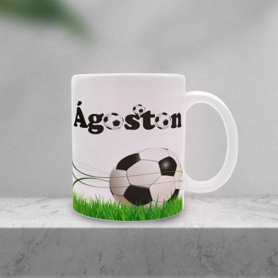 Az elegáns fehér színű bögre elülső részén a választott név büszkélkedik, míg az alsó részen pedig egy futball motívum található. Ez a bögre a mindennapi használatra is alkalmas, és remekül mutat bármilyen konyhaszekrényben vagy irodai asztalon.