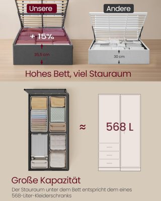 • Bőséges tárolóhely: Az ágy alatti tárolórész 31,7 cm magas, elegendő helyet biztosít akár egy közepes méretű bőrönd számára is, így segít rendben tartani a szobát