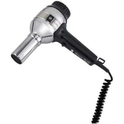 Nostalgie ionic hajszárító, fali konzol nélkül, króm-fekete burkolat, ionizáló technológiával, 2 hőmérséklet állítás, hideg levegő fújás, 60cm hosszú kábel, hordozó zsákkal. 1000W teljesítmény, 78 dB hangerősség.