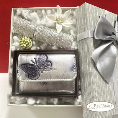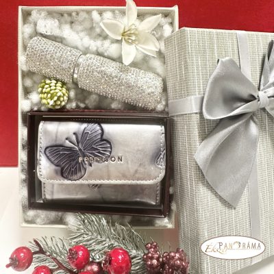 Női valódi bőr pénztárca Rfid védelemmel, ezüst színben, pillangó díszítéssel, díszdobozban- PETERSON MINI