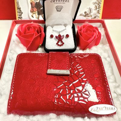 • Ajándékcsomag Női valódi bőr pénztárca Eredeti kristályos szettel