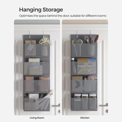 • Használja ki az ajtó mögötti teret: Ha körülötte az összes szekrény túl van telve, de még mindig vannak sálak, zoknik és gyermekruhák, ahol nincs megfelelő hely, akkor használja ki teljes mértékben az ajtó hátulját ezzel a 4 nagyméretű ajtótárolóval. egyenként 32 x 10 x 17 cm-es zsebbel