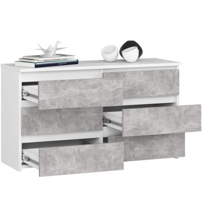 AKORD CL100 Modern Fiókos Komód Laminált Fehér-Beton 6 Fiókos