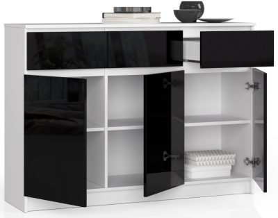 AKORD CLP K140 Komód Magasfényű Fekete-Fehér