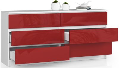 AKORD CLP K160 Magasfényű Piros-Fehér Komód 6 Fiókkal