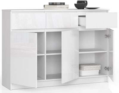 AKORD CLP K140 Magasfényű Fehér Komód 3 Ajtóval és 3 Fiókkal