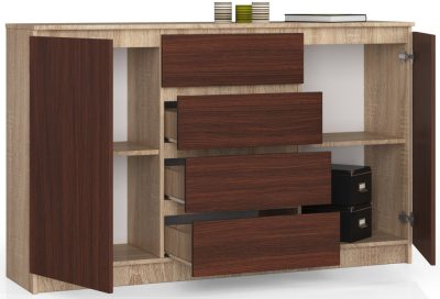 komód, tárolóbútor, Sonoma tölgy, wenge, modern bútor, nappali bútor, fiókos szekrény, AKORD bútor, laminált bútor