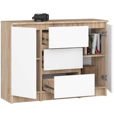 AKORD K100 Sonoma Tölgy-Fehér Komód 2 Ajtóval és 3 Fiókkal