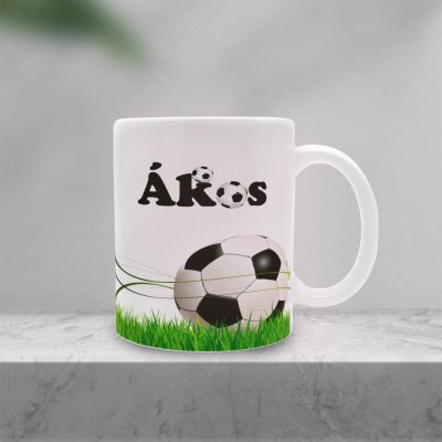 Az elegáns fehér színű bögre elülső részén a választott név büszkélkedik, míg az alsó részen pedig egy futball motívum található. Ez a bögre a mindennapi használatra is alkalmas, és remekül mutat bármilyen konyhaszekrényben vagy irodai asztalon.