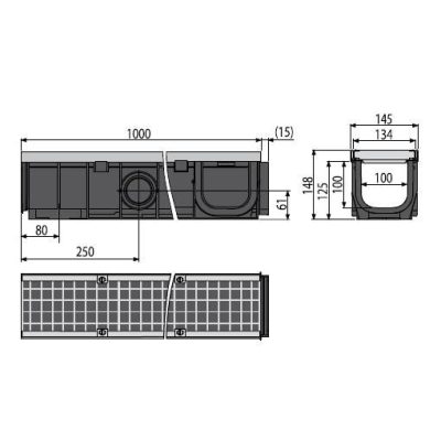 • Vízelvezető folyóka belső keresztmetszete: 100×100 mm, PP – polipropilén zsírkővel – ellenáll a mechanikai, kémiai és hő károsodásnak