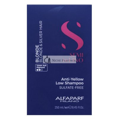 • Alfaparf Milano Semi Di Lino Blonde Intense Anti-Yellow Low Shampoo neutralizáló sampon szőke hajra 250 ml
