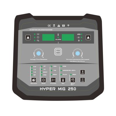 Az ALFAWELD HYPER MIG 250 Synergic egy 250 A-es, 400 V-os digitális inverteres hegesztőgép, amely MIG/MAG, MMA és TIG DC Lift Arc üzemmódokkal biztosít professzionális megoldást műhely- és ipari felhasználásra. A modern IGBT inverter technológia stabil ívet, megbízható működést és kiváló hegesztési élményt garantál akár intenzív munkakörnyezetben is.