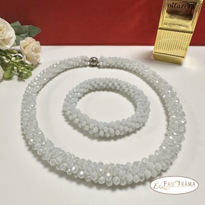 Csillogó, csiszolt gyöngyökből készült nyakék hozzá illő karkötővel