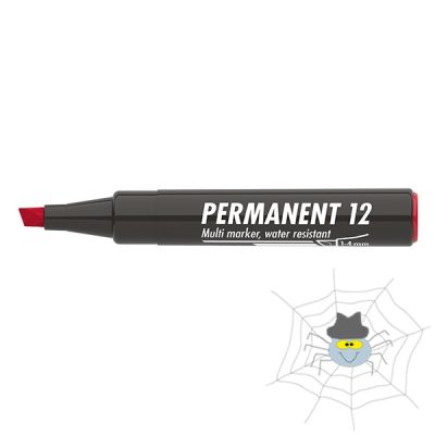 Műanyag, üveg, fém, fa illetve szinte minden felület feliratozására , jelölésére alkalmas, alkoholbázisú festékkel töltött permanent marker. Írásképe száradás után törlés-és vízálló. Vágott csúccsal, klipszes kupakkal. Vonalvastagság: 1-4 mm