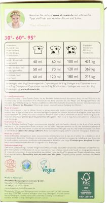 - Bőrgyógyászatilag tesztelt univerzális mosószer pamutból és pamutkeverékekből készült fehér és színtartó színes ruhákhoz