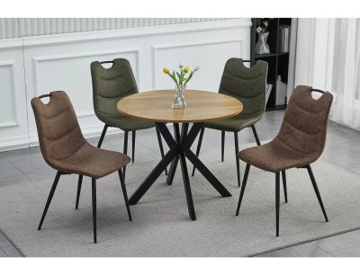 Az Aloe étkezőszék a modern design és a funkcionalitás tökéletes ötvözete. A barna mikroszálas kárpitozás puha, kellemes tapintású felületet biztosít, míg a matt fekete fém váz stabil alapot nyújt. A szék háttámlájának tetején található praktikus fogantyú megkönnyíti a mozgatást. A szék ergonomikus kialakítása és a háttámla ívelt vonalai maximális kényelmet biztosítanak.