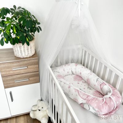 Az Álom Elefánt babafészek egy szeretetteljes és nyugalmat árasztó első kuckó a kisbabád számára. A rózsaszín alapon álmodozó kis elefántok és puha felhők megidézik a gondoskodó ölelést, amit a baba az anyaméhben érzett. Ez a meghitt, szűkített forma hozzájárul ahhoz, hogy kisbabád könnyebben megnyugodjon, mélyebben aludjon és biztonságban érezze magát – már az első naptól.