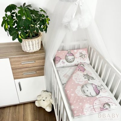 Álomelefánt rózsaszín – 2 részes babaágynemű szett elefántmintával, kislányoknak