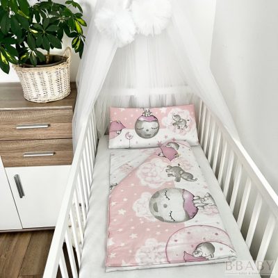 Az Álomelefánt rózsaszín 2 részes babaágynemű szett meleg, puha és szeretettel teli környezetet teremt, hogy kislányod minden nap mosollyal hajthassa álomra a fejét.