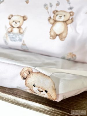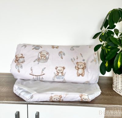 Az Álomfogós mackók mintás óvodai derékalj igazi kis álomkuckót teremt az oviban – pasztell rózsaszín alapon, szürke tónusú mackókkal és álomfogó motívumokkal. Ez a harmonikus, finoman megrajzolt minta nemcsak megnyugtatja a gyermeket, hanem biztonságérzetet is nyújt számára a délutáni pihenések idején.