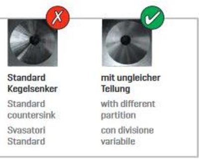 Az eltol élek 102°-138°-ra helyezkednek el egymástól, ezért nagyon finom felületű süllyesztést lehet készíteni.
