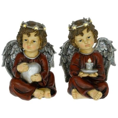 Decorand angyal szívvel, gyertyával, ülő, Led-es, glitteres, poly 2 féle 14,5x14x19,5 cm