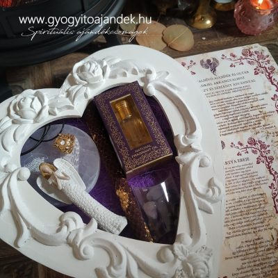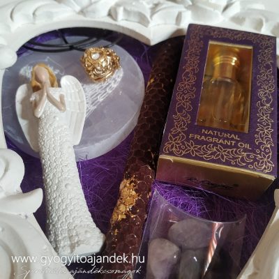 • Angyalhívó ajándékcsomag - Ajándékcsomag ametiszt és szelenit ásványokkal és angyalhívó csengővel (Zadkiel 2.)