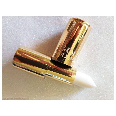 Gold Collagen öregedésgátló ajakdúsító rúzs összetevői:olus olaj (növényi), folyékony paraffin olaj (ásványolaj), mesterséges viasz, hidrogenizált kókuszolaj, Ricinusolaj, cera alba (méhviasz), karité fából kivont vaj (shea vaj), cetil-palmitát, édes mandulaolaj, oktinoxát, hidrogenizált mikrokristályos paraffin olaj, 2-Etil-hexilpalmitát, csillámpala, víz, glyceryl undecylenate, gyöngyházpor, titán-dioxid, parfüm (illatanyag), tribehenin, sztearinsav, tocopheryl acetate, sorbitan isostearate, propilén-glikol, benzil-benzoát, tejsav, kumarin, benzyl-cinnamát, tengeri kollagén, Bht., palmitoyl-oligopeptid