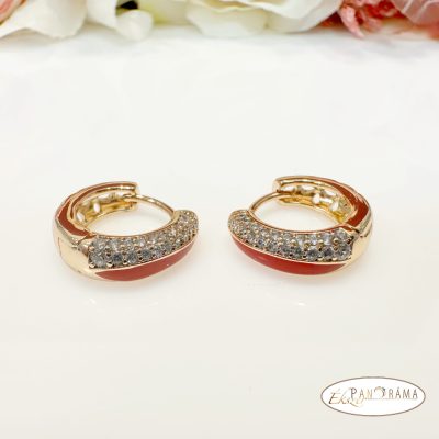 18K Gold Filled anti-allergén, nikkel és ólom mentes arany színű, fülbevaló kristályokkal és tűzzománc jellegű színes betéttel.