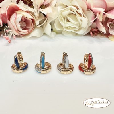 18K Gold Filled anti-allergén, nikkel és ólom mentes arany színű, fülbevaló kristályokkal és tűzzománc jellegű színes betéttel.