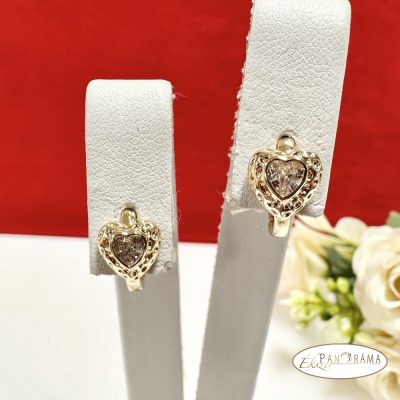 Antiallergén, 18K Gold Filled kapcsos, szív fülbevaló kristállyal - Love