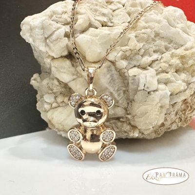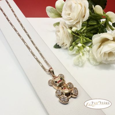 18K Gold Filled antiallergén, nikkelmentes arany színű, medálos nyaklánc kristályos maci díszítéssel.