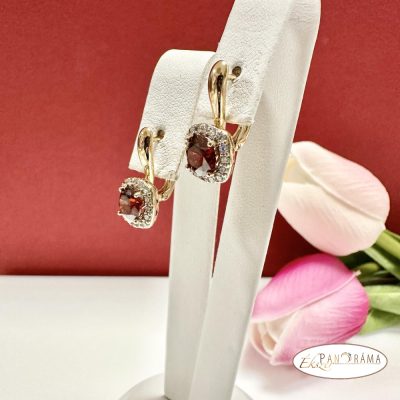 Antiallergén, nikkel és ólom mentes fülbevaló, arany színű, piros kristállyal díszítve.