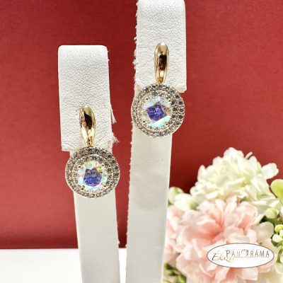18K Gold Filled anti-allergén, nikkel és ólom mentes, arany színű kapcsos fülbevaló kristályokkal díszítve.