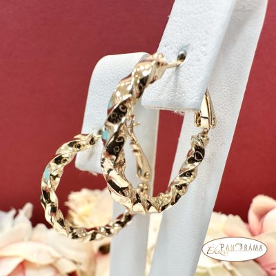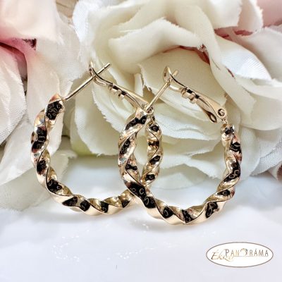 18K Gold Filled antiallergén, nikkel és ólom mentes, arany színű, enyhén csavart karika fülbevaló.
